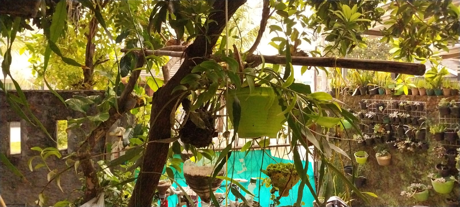 Gunakan Pot atau wadah tanaman yang dapat di gantung atau di tempelkan seperti pada gambar berikut
